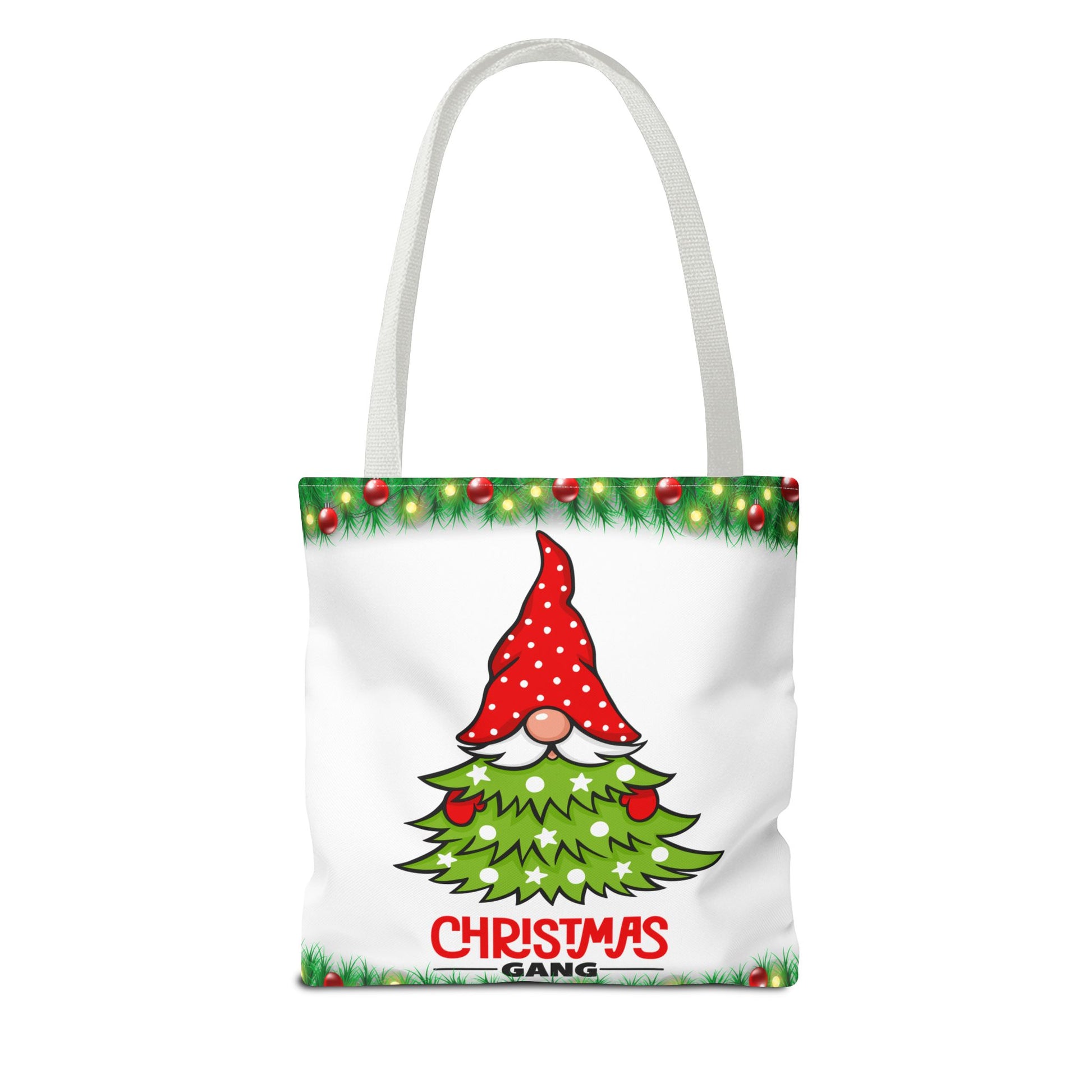 Spread holiday cheer with this Christmas gnome-themed Tote Bag, full of joy and festive spirit. Made with durable polyester fabric, reinforced stitching, and boxed corners, this tote is perfect for everyday use and adds a touch of whimsy to any outfit. Ideal for those who love Christmas and festive celebrations.