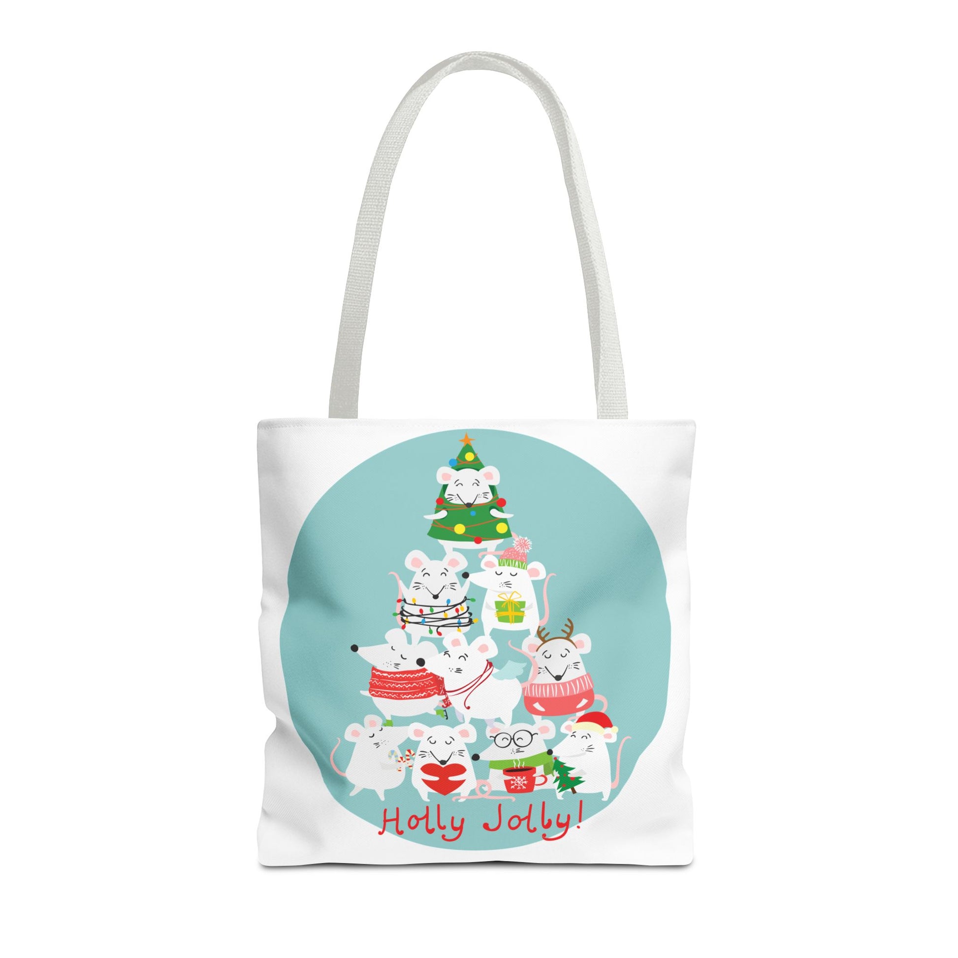 Unleash your holiday spirit with our "Holly Jolly" Tote Bag, complete with a festive mouse Christmas tree. Add your personal touch with a custom name or witty phrase. Get ready for a holly, jolly good time!