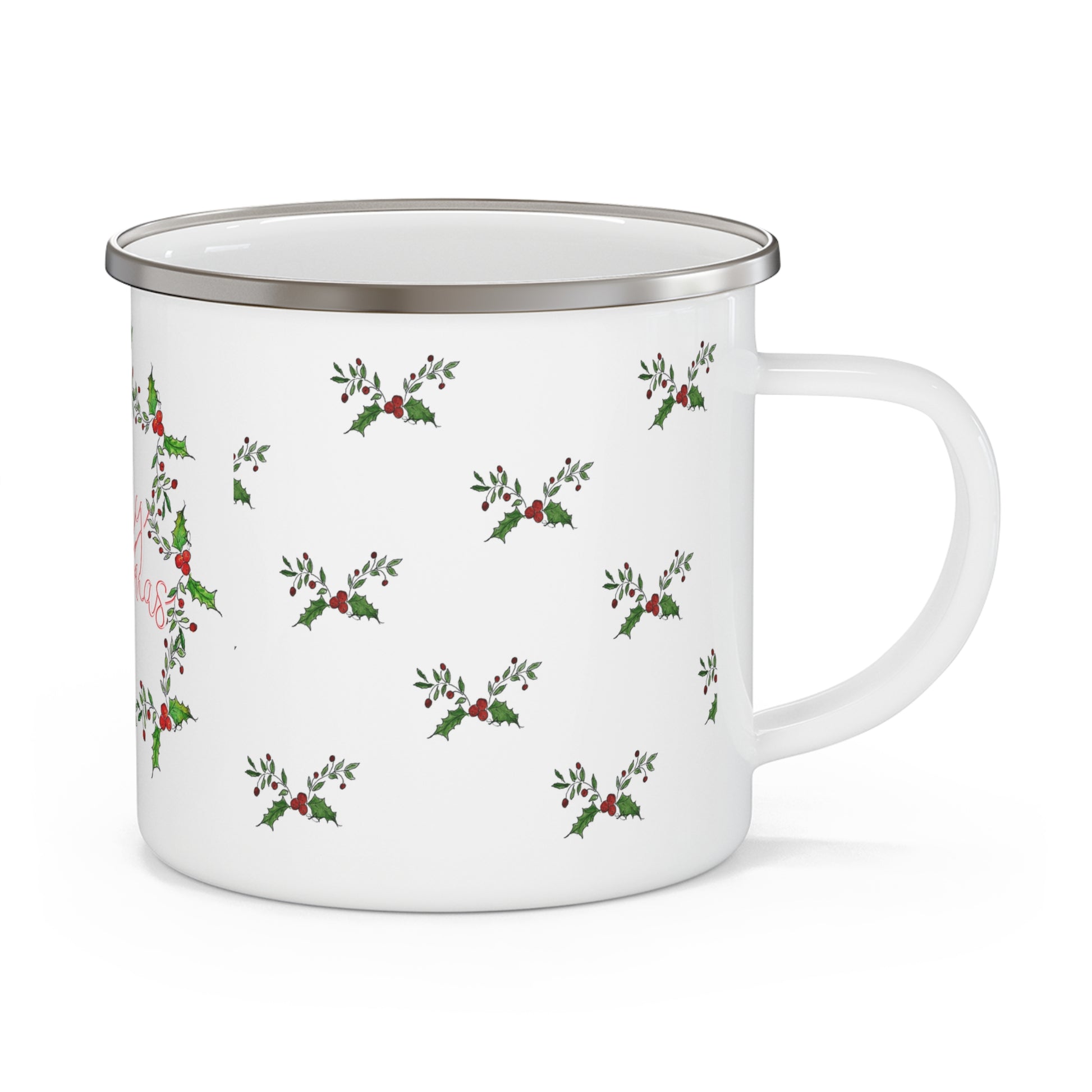 " Holly n' Berries" Winter Holiday Coffee Enamel Mug