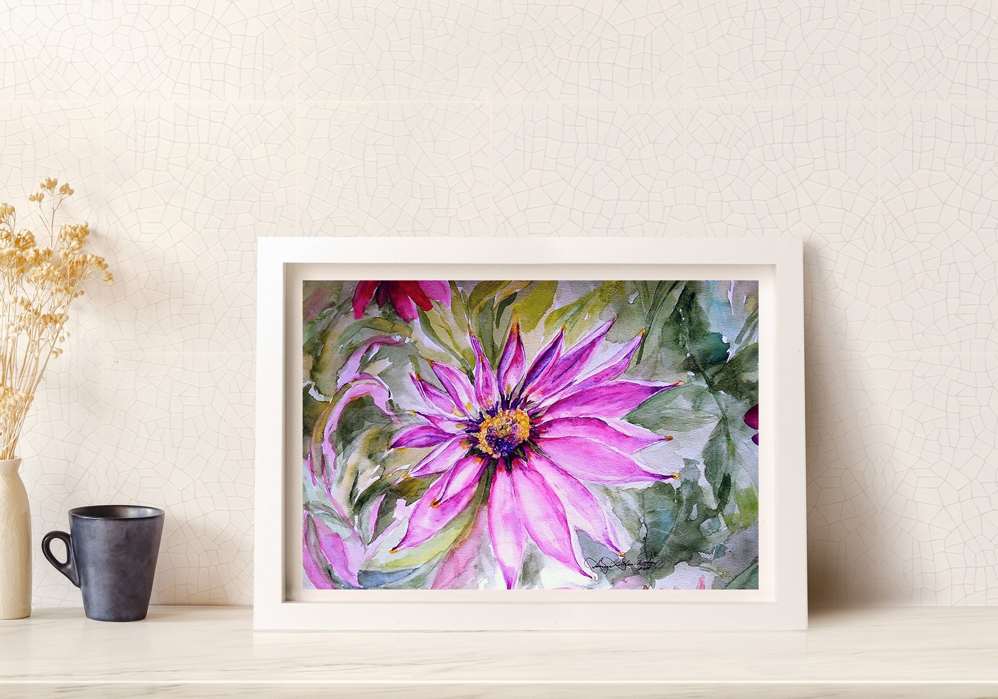 Created with watercolor, pen and ink, my original artwork features a daisy. This wall art makes a lovely addition to your decor or gift for a loved one. We’ve printed this high-resolution image with the highest quality inks and paper so that this gorgeous art print can be enjoyed for many years to come. Whether buying for yourself or giving as a gift, this lovely piece of home decor is sure to please!