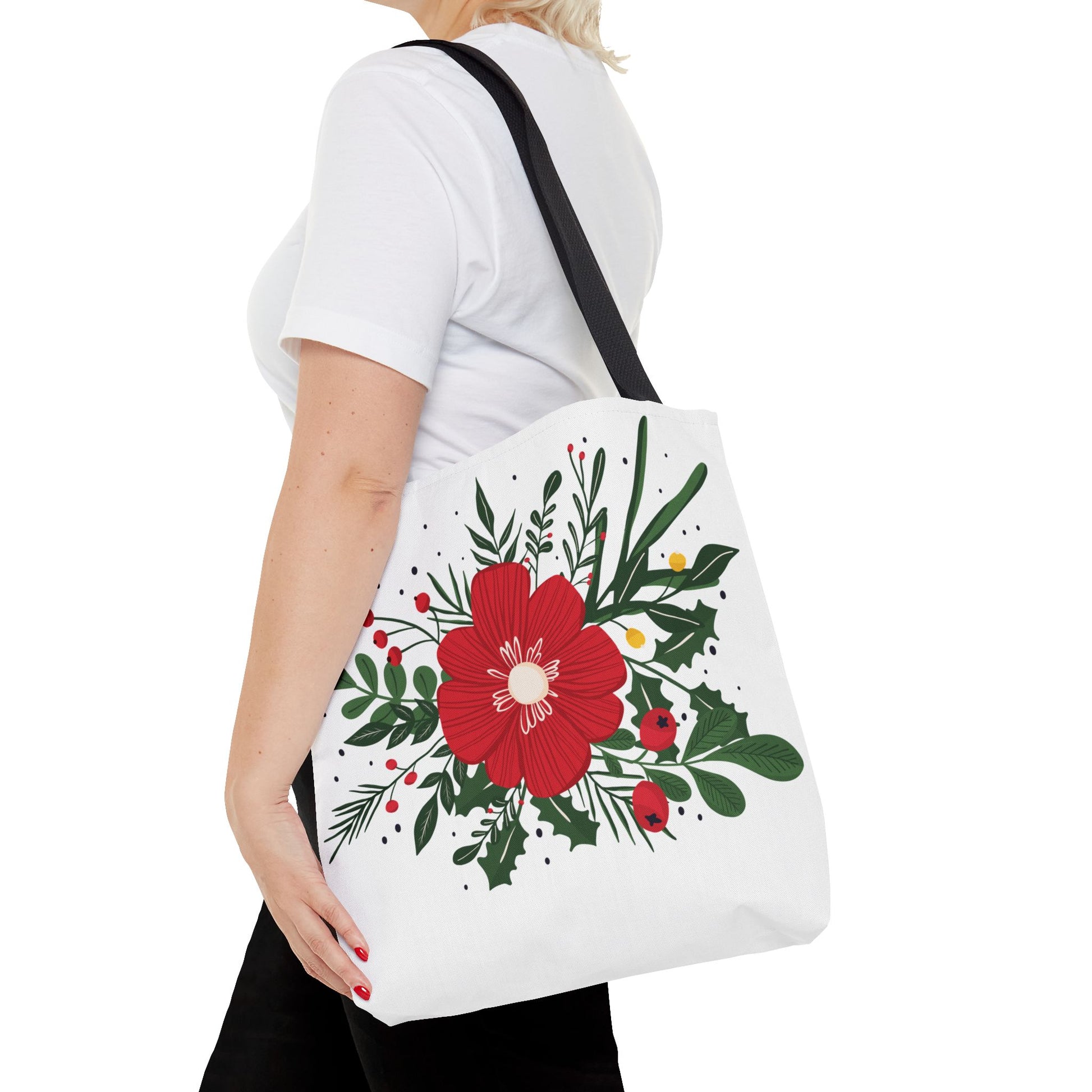Add a touch of aloha to your outfit with the "Pua Kalikimaka" tote bag! Perfect for carrying all your essentials, this bag adds a playful punch of style.
